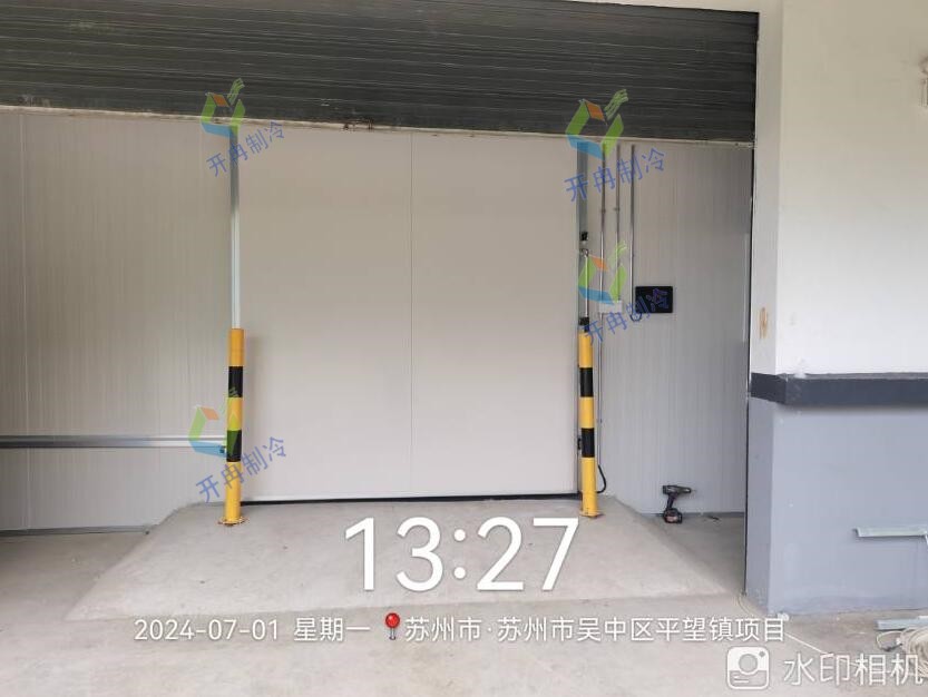 1、庫房部分:該農(nóng)產(chǎn)品冷庫的墻體采用雙面0.426彩鋼100mm厚聚氨酯高壓發(fā)泡保溫板,密度40±2kg/m3,阻燃等級(jí)B1級(jí)。配備有單開手拉平移門,該門為雙面彩鋼聚氨酯保溫門,冷庫門帶防結(jié)露電加熱高抗凍熟料密封條,帶安全脫鎖裝置。與門聯(lián)動(dòng)配備有風(fēng)幕機(jī)以及設(shè)有PVC門簾,防止熱能進(jìn)入。地面鋪設(shè)50mm厚XPS擠塑板兩層交錯(cuò)壓縫鋪設(shè),共100mm厚,阻燃等級(jí)B2級(jí)。擠塑板上下兩層鋪設(shè)PE隔汽膜,最后鋪設(shè)100mm厚鋼筋混凝土地坪(含門口斜坡)。此外,采用頂部T型鋁吊梁用于冷庫頂板加固,還配備有絲桿、密封硅膠等安裝輔料。
